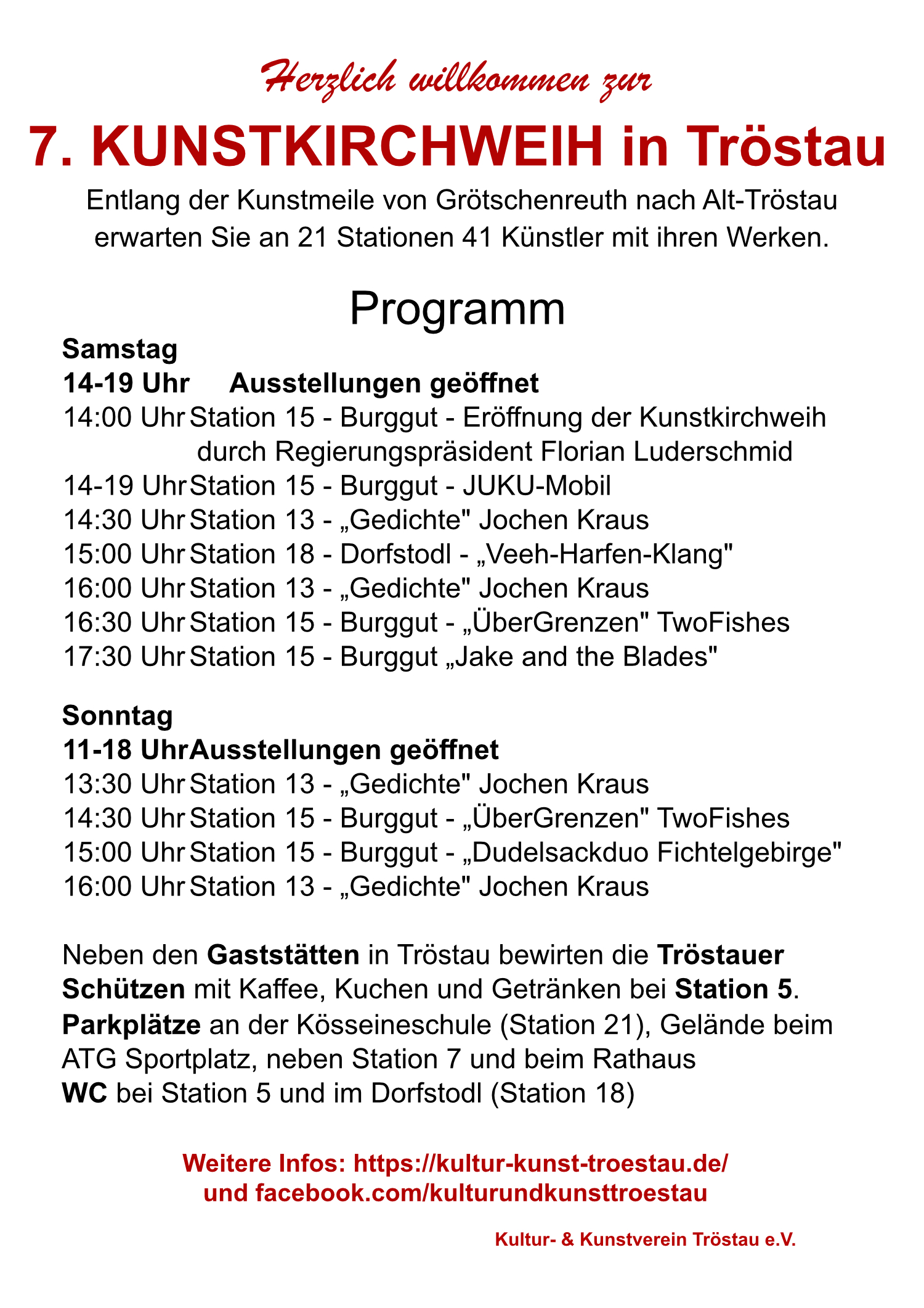 Es ist wieder soweit! Die siebte Kunstkirchweih in Tröstau steht vor der Tür.
